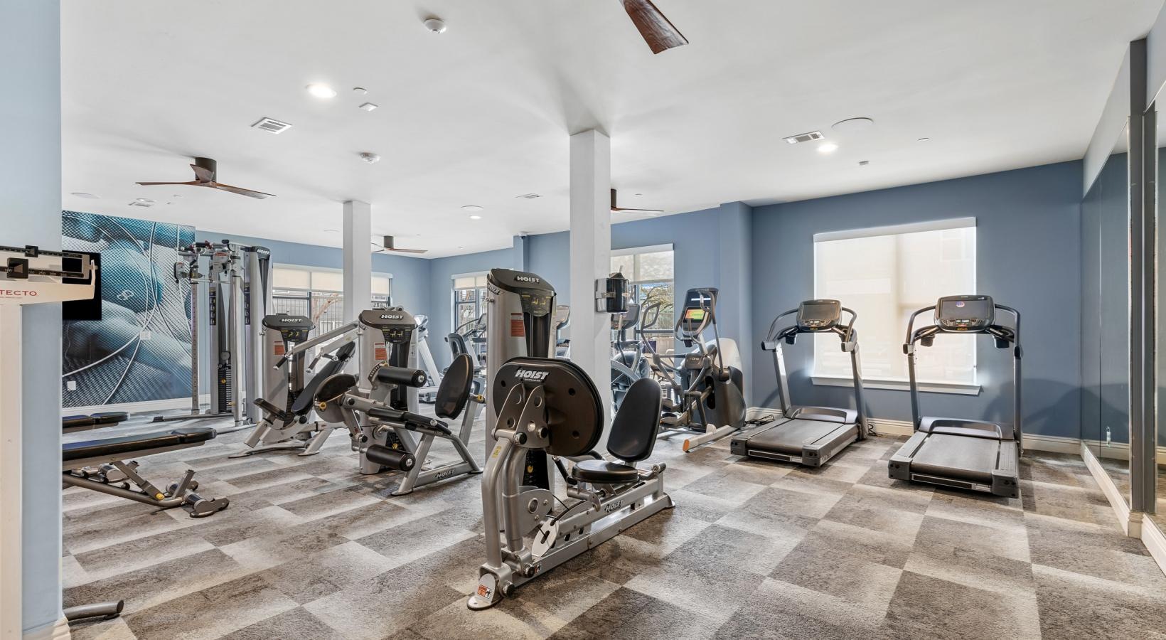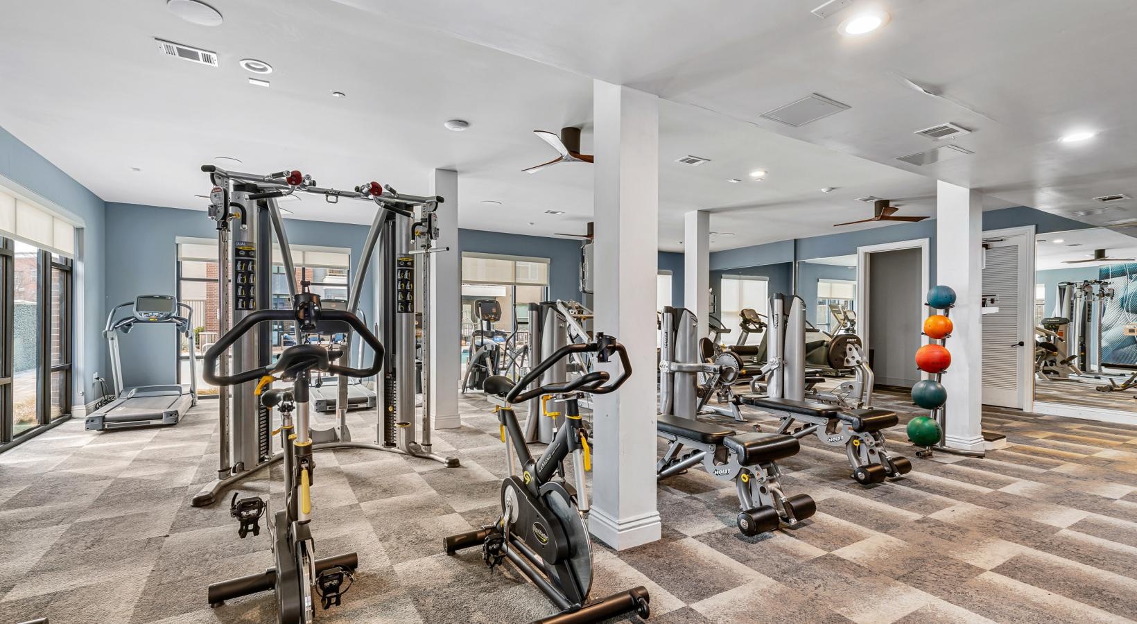 • a gym with exercise equipment