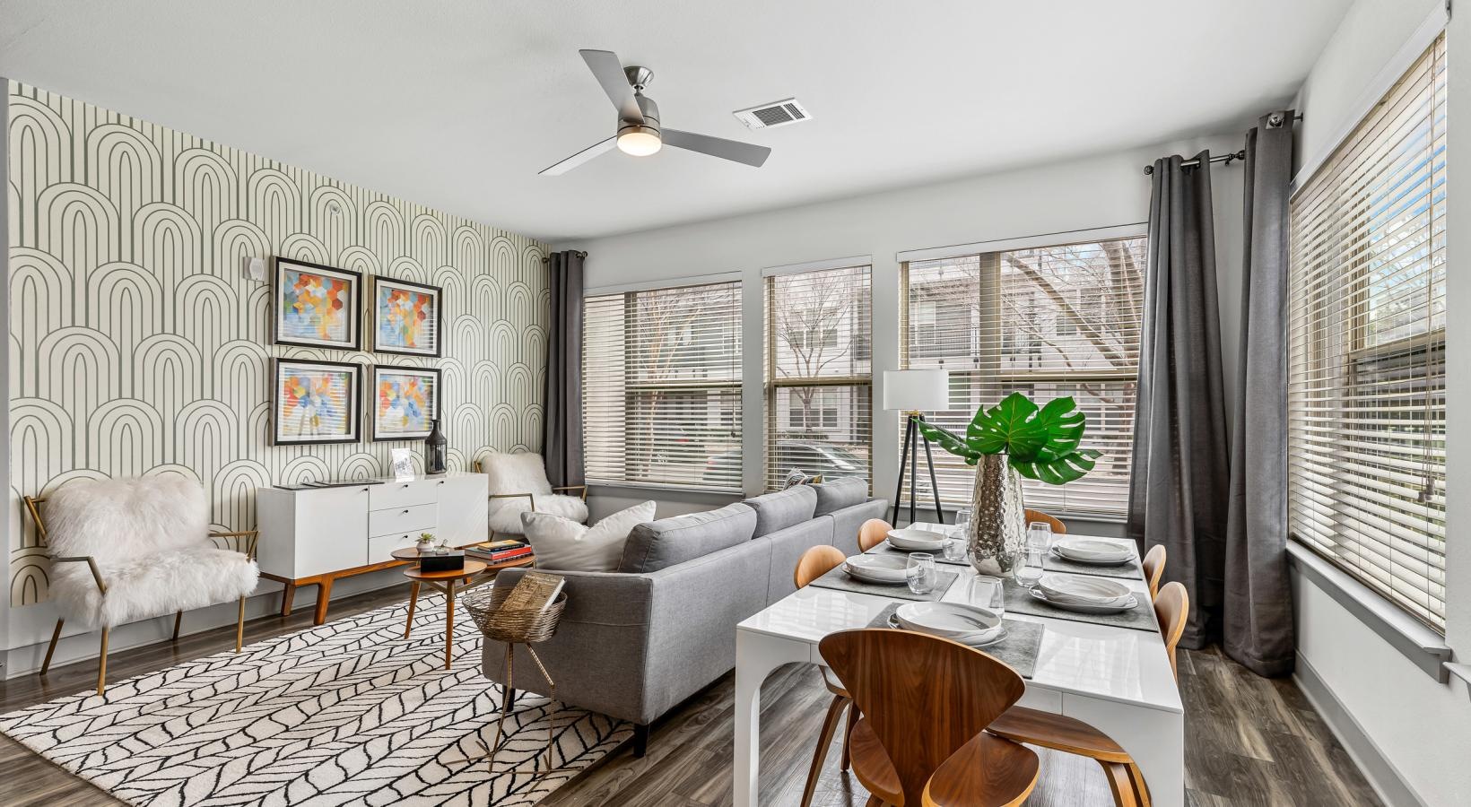 • a living room with a couch and a table
