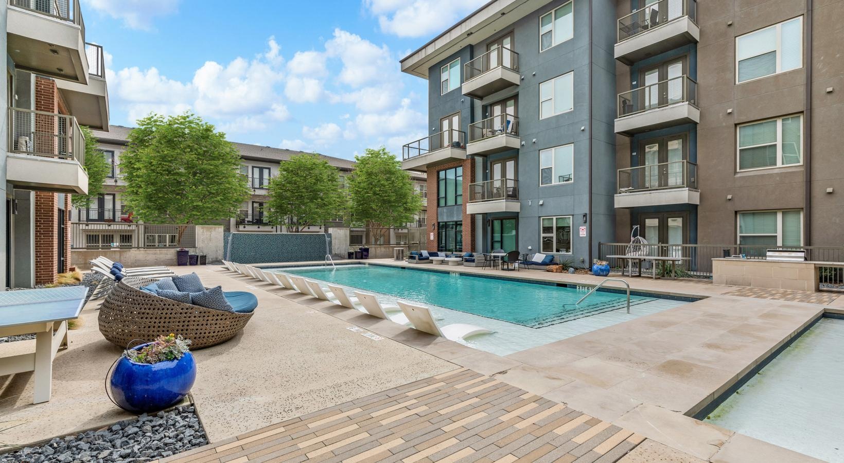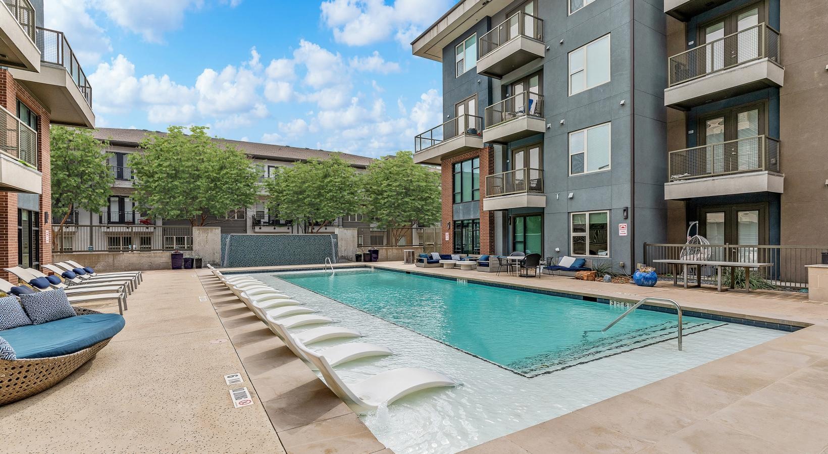 • a pool in a courtyard between buildings