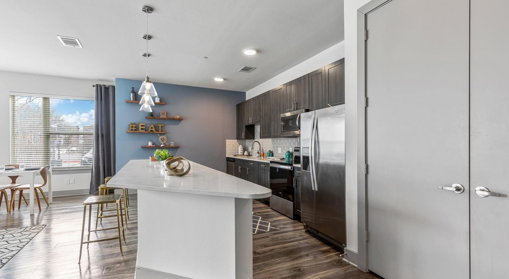• a large kitchen with a dining table